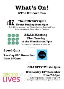 Our Sunday Quiz starts at 8:30pm – best get in earlier to secure a table – £3 per person