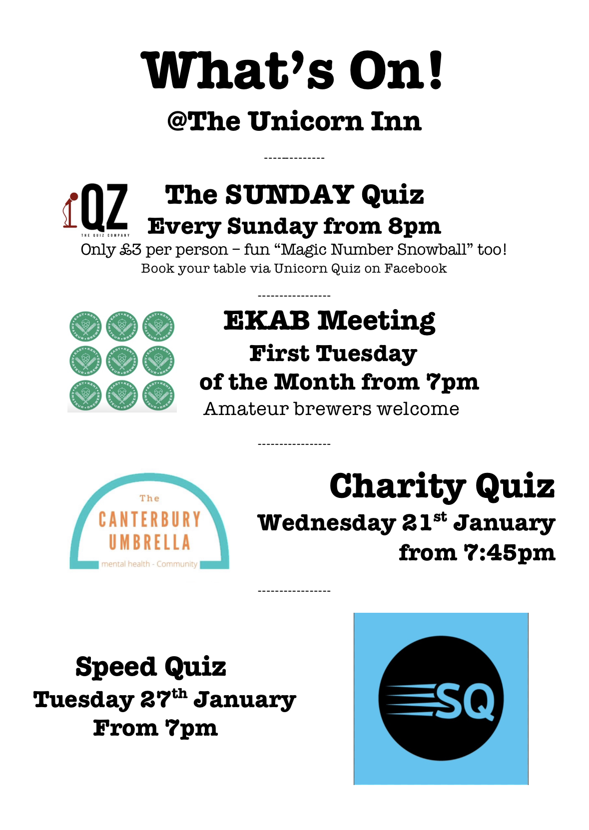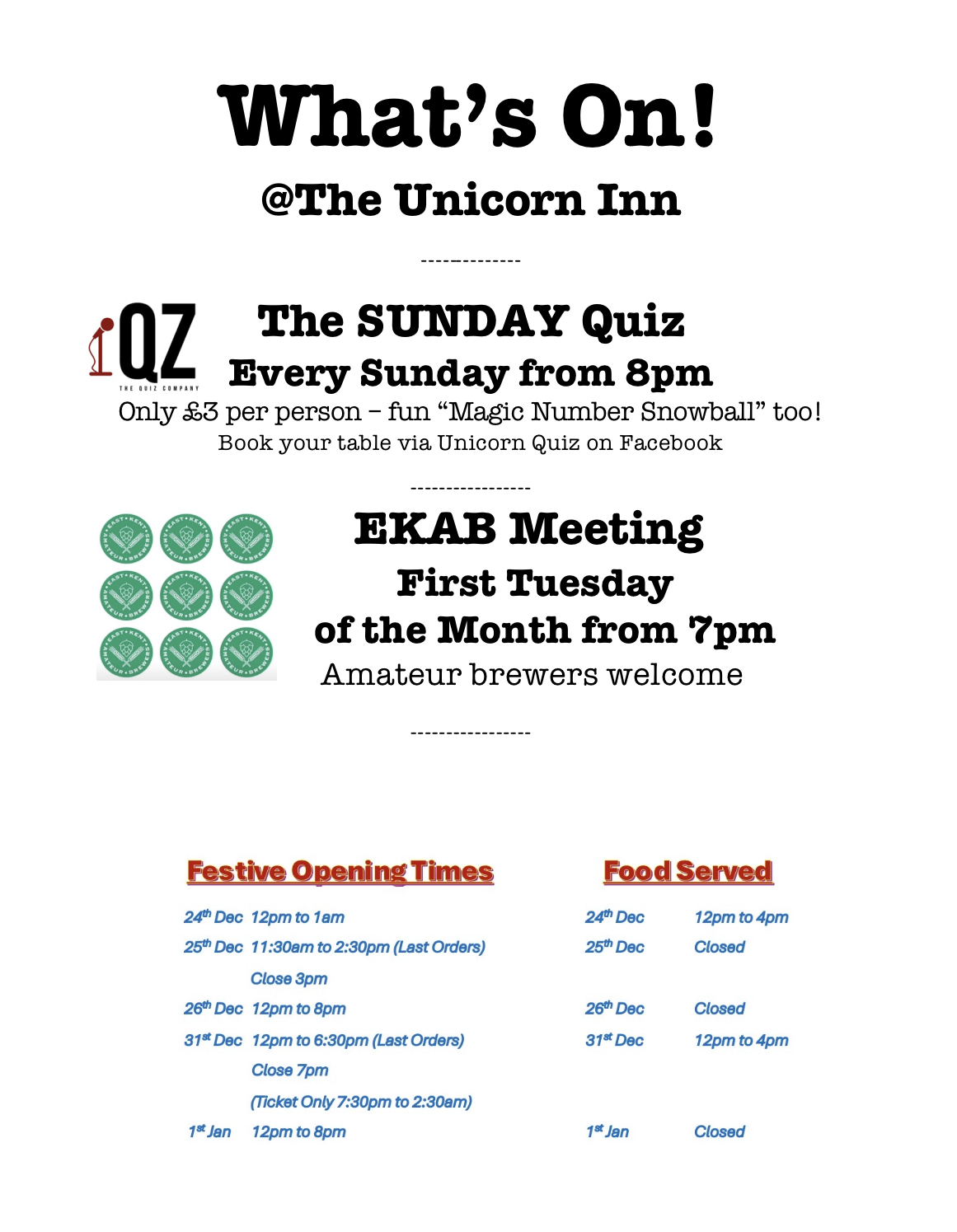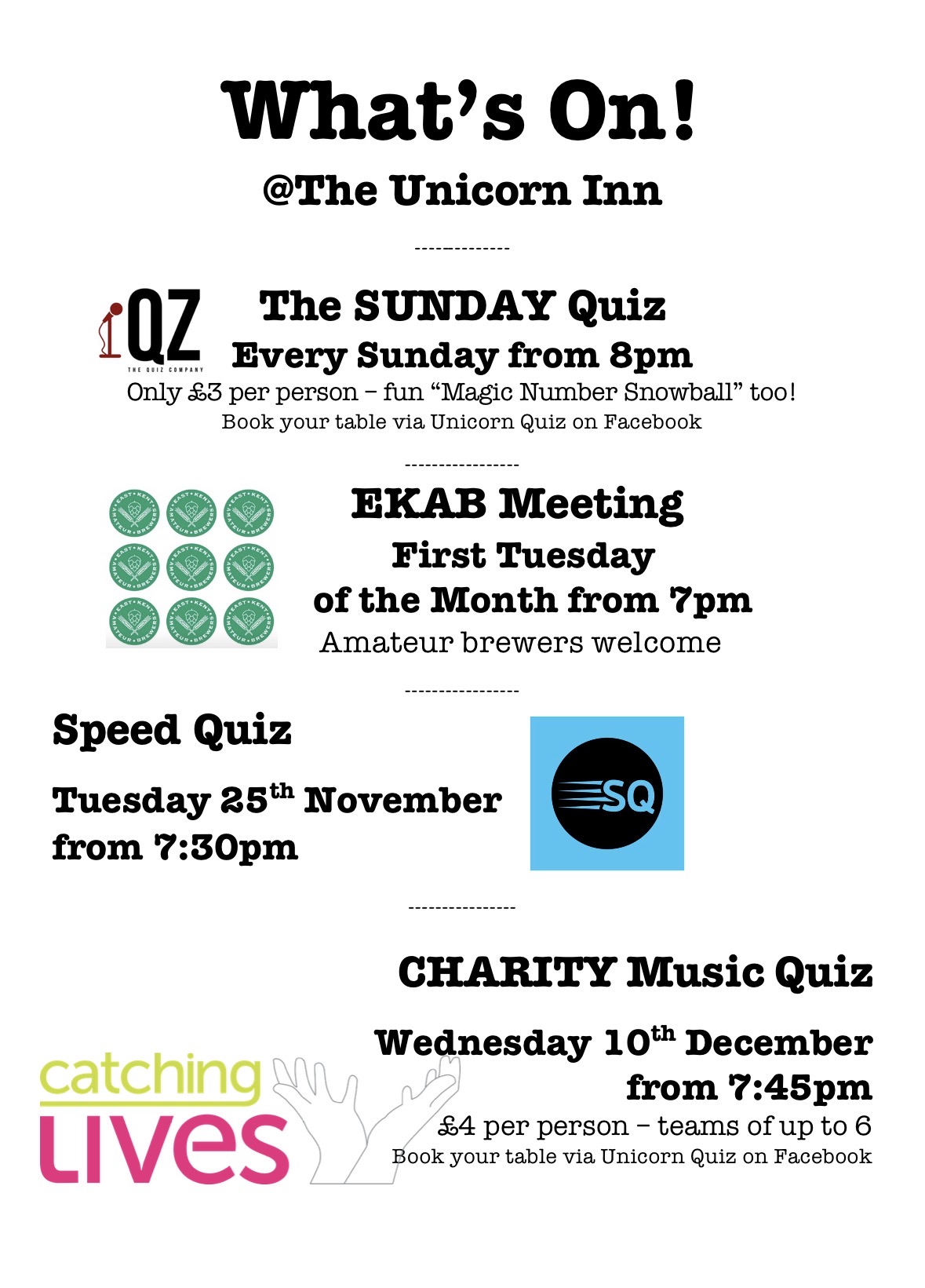 Our Sunday Quiz starts at 8:30pm – best get in earlier to secure a table – £3 per person