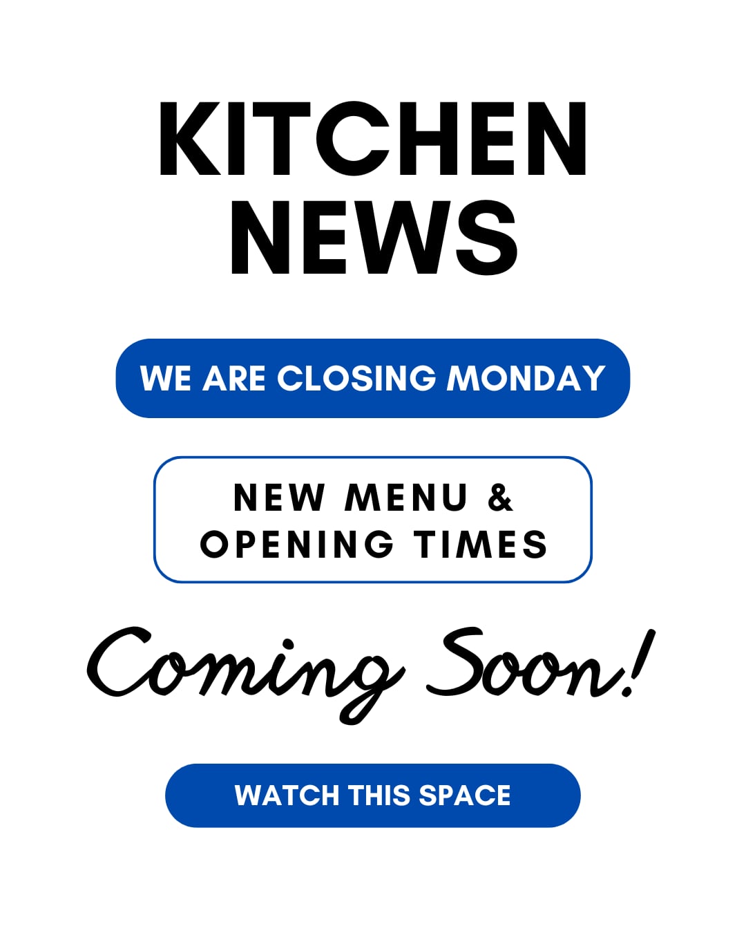 NEW MENU AND SERVING TIMES